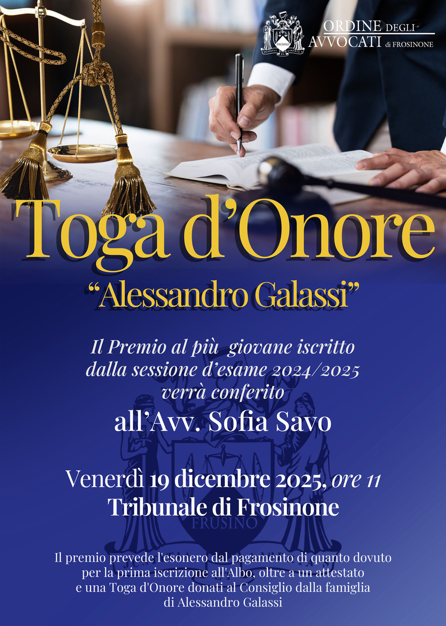 Si comunica che l'Assemblea degli Iscritti all'Ordine degli Avvocati di Frosinone è convocata per il giorno 18 dicembre 2025, alle...